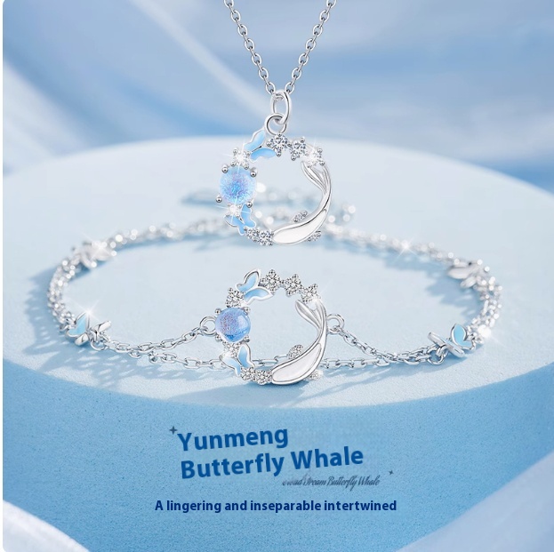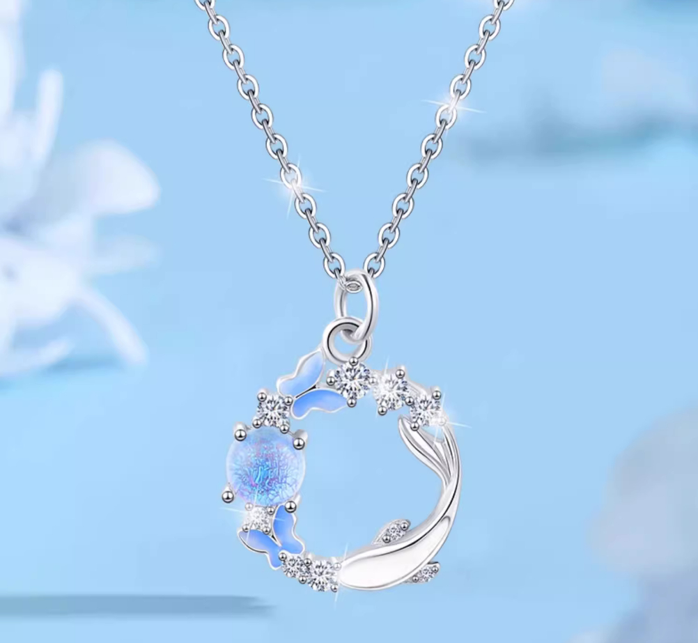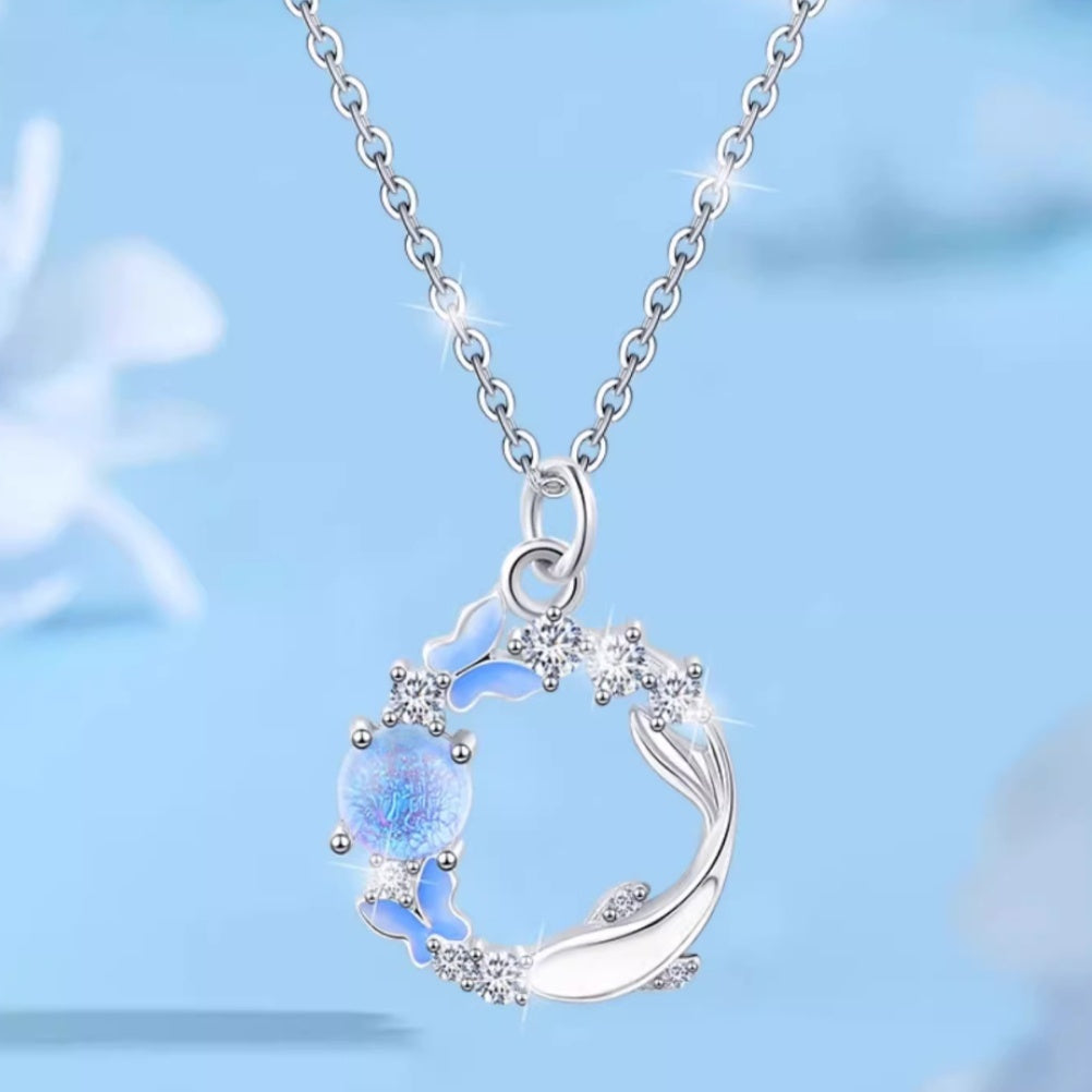 Butterfly Pendant Necklace - Sparkling CZ Crystal Moon & Star Design