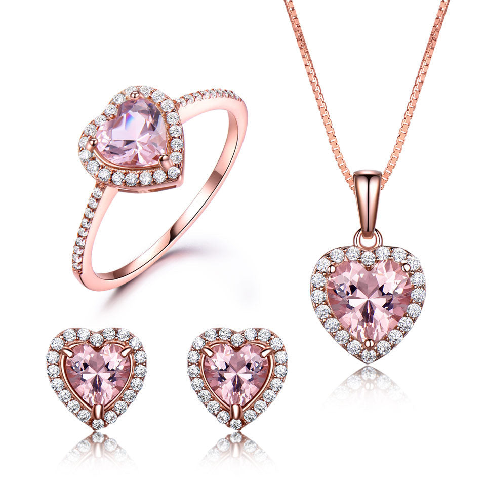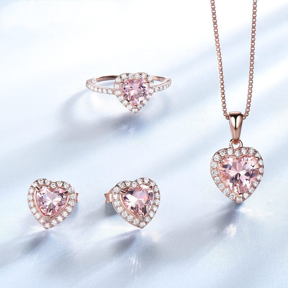 Elegant Heart Jewelry Set - Sparkling Earrings, Ring & Pendant Necklace (3-Piece Set)