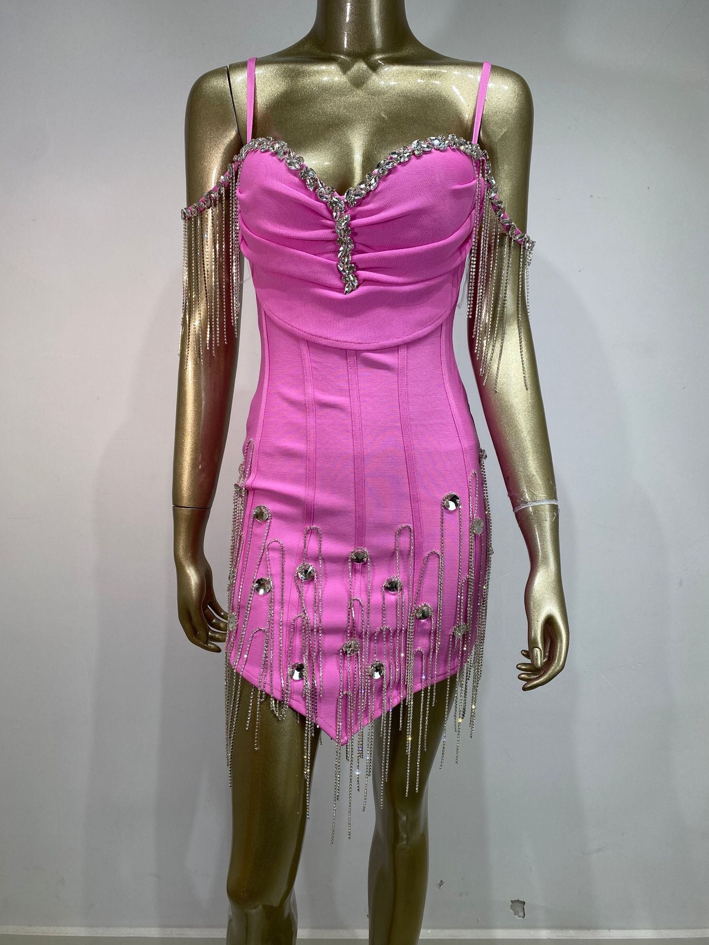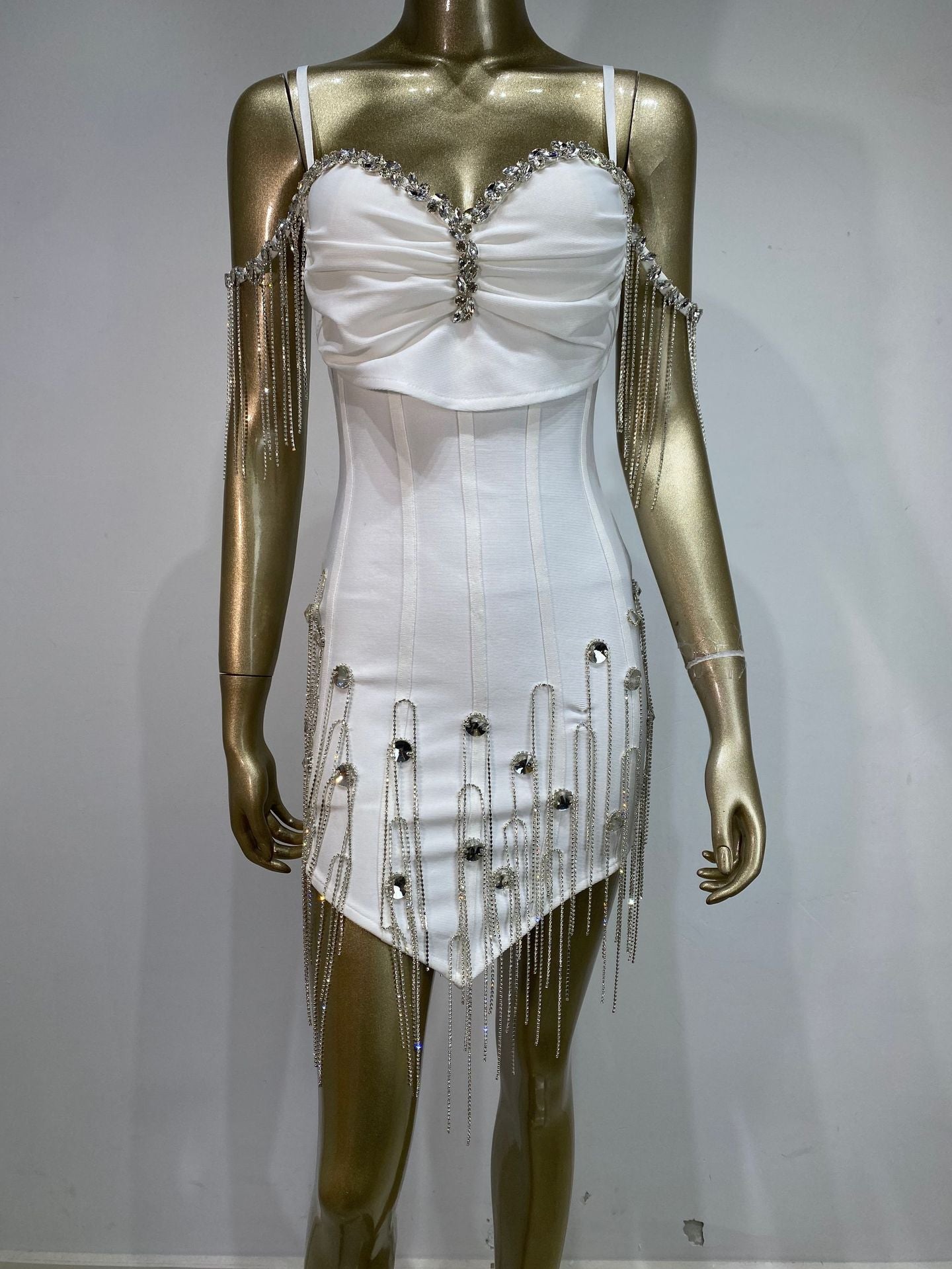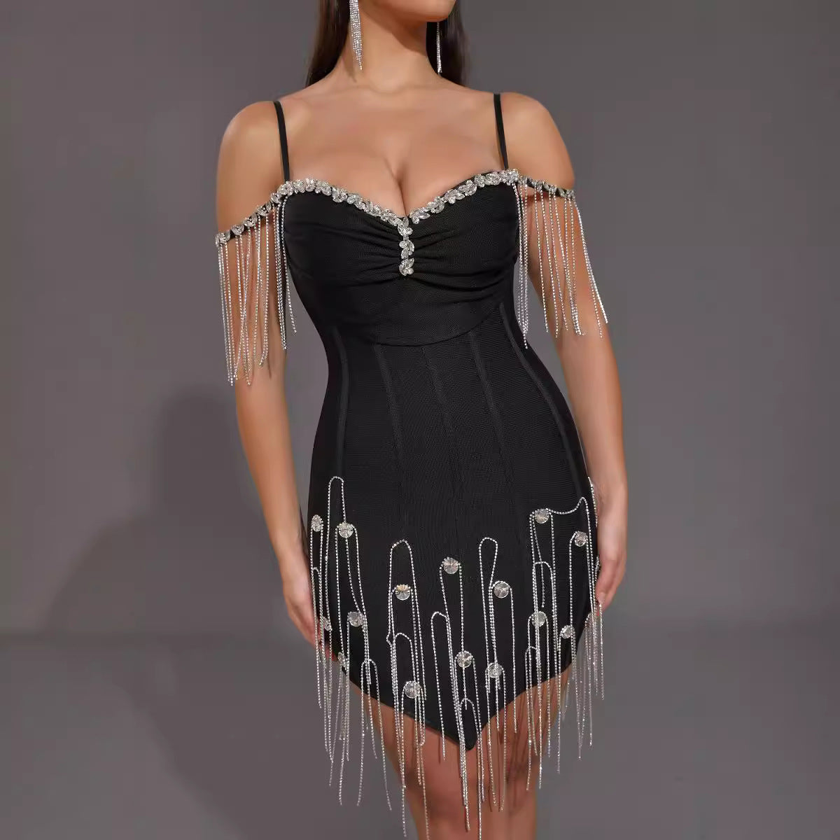 Luxury Crystal Fringe Bandage Dress - Elegant Black Bodycon Party Outfit